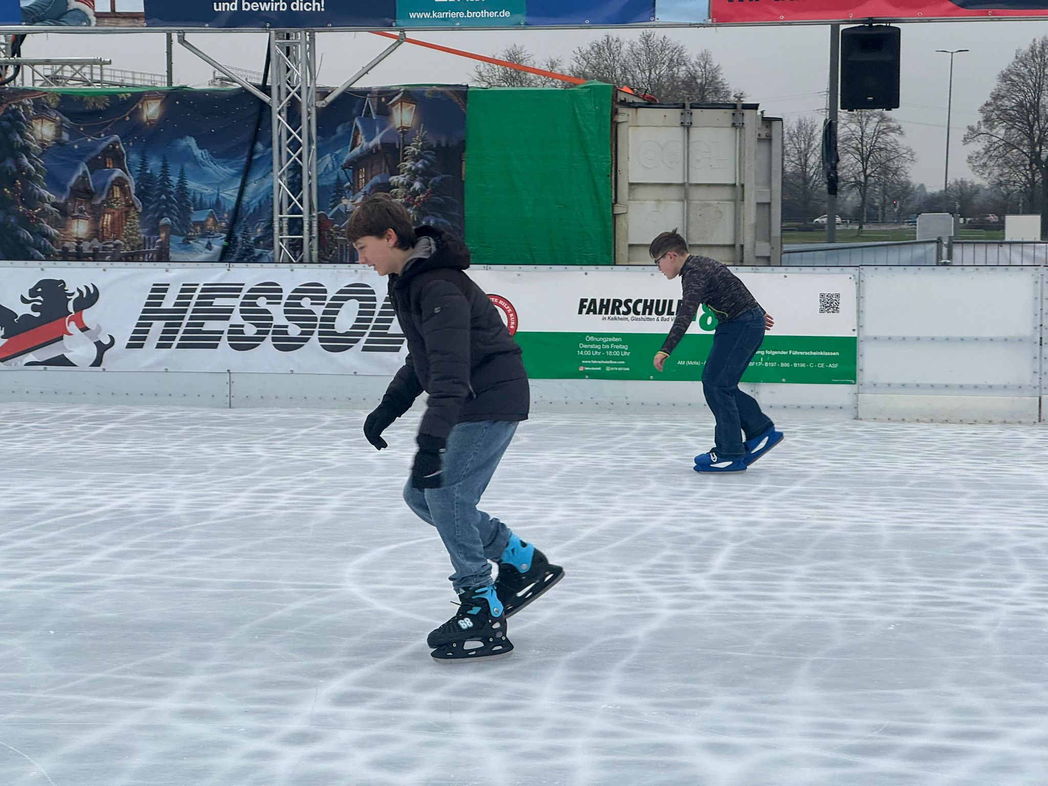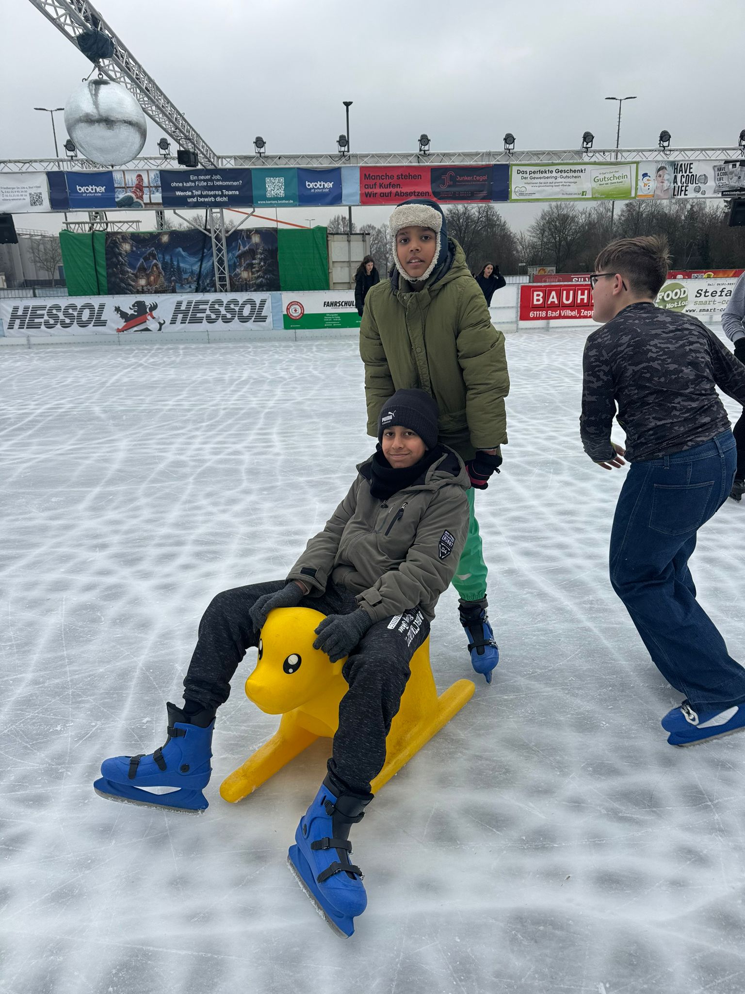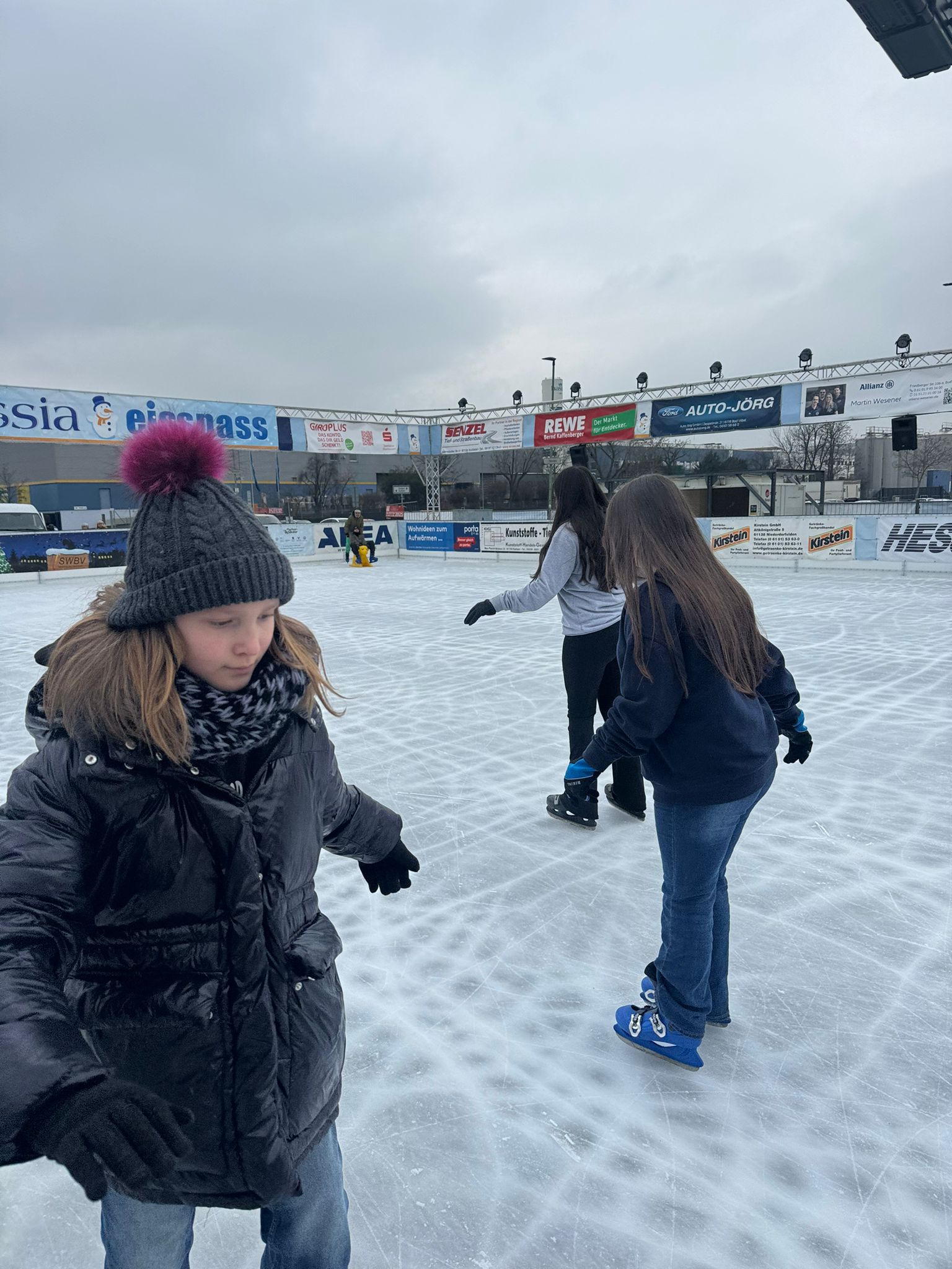 Am 18.12.25 war unsere Klasse auf der Eisbahn in Bad Vilbel. Die Eisbahn war extra am Vormittag nur für unsere Klasse geöffnet. Das war richtig cool, weil wir viel Platz hatten und alle Schlittschuh laufen konnten.
